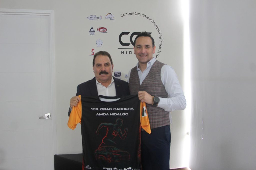 El Presidente de AMDA Hidalgo, Lic. Valerio Charolet Islas, realizó una cordial invitación al Ing. Alejandro Sánchez, Presidente del Consejo Coordinador Empresarial de Hidalgo, para participar en la 1er. Gran Carrera AMDA Hidalgo 2025, que se llevará a cabo el próximo 17 de agosto, a las 7:00 a.m., en el Complejo Deportivo Revolución Mexicana.
